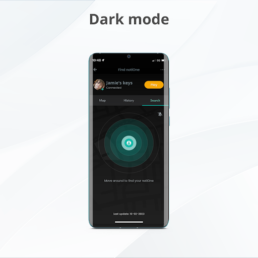 ✔ Find nearby - the radar brings you to the nearby notiOne device (e.g. keys hidden under the wardrobe)