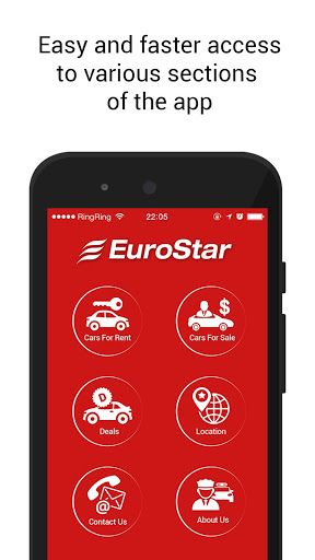 Welcome to Eurostar Rent-A-Car. With the Eurostar app you can easily make a reservation and get details using your phone.