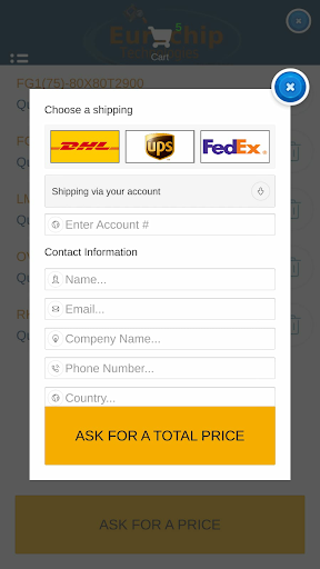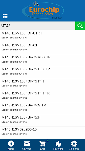 Eurochip Technologies app allows you to get a quote and buy electronic components. You could find your electronic components and view in-stock/availability through a friendly search engine and with the ability to build up your cart and get a quotation.