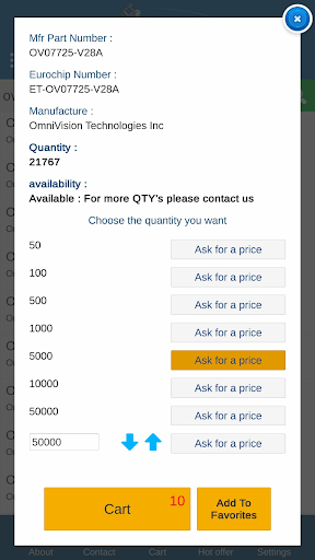 Eurochip Technologies app allows you to add electronic components searching to favorite table and make it easier for future searches or your Purchase orders.