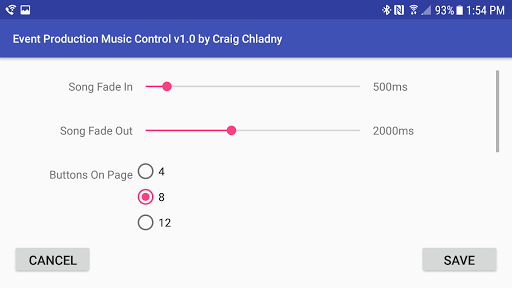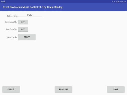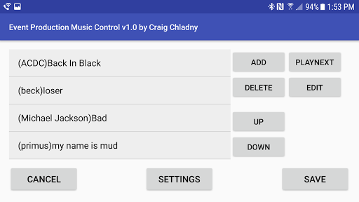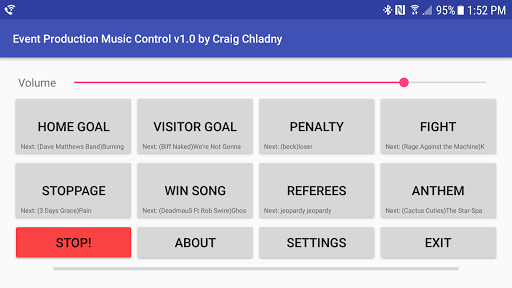 Using Event Production Music Control you can set up up to 16 playlists (12 on a 7" tablet or smaller phone) and control the music with smooth fade in's and out's to make everything sound coordinated and professional.