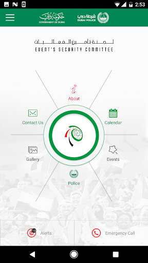 Event's Security Committee App will give information to users attending the big events that is done by the Event Security Committee in Dubai, it presents information like (the event Time- information about the event- Duration- location- map to reach the event- Facilities the event provide like the police office lost and found parking, Taxi, metro stations, and bus station locations inside the event and all this through a clear map), and also ability to call for emergency and notifications