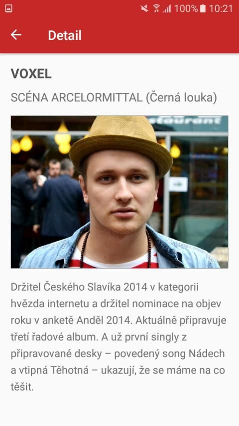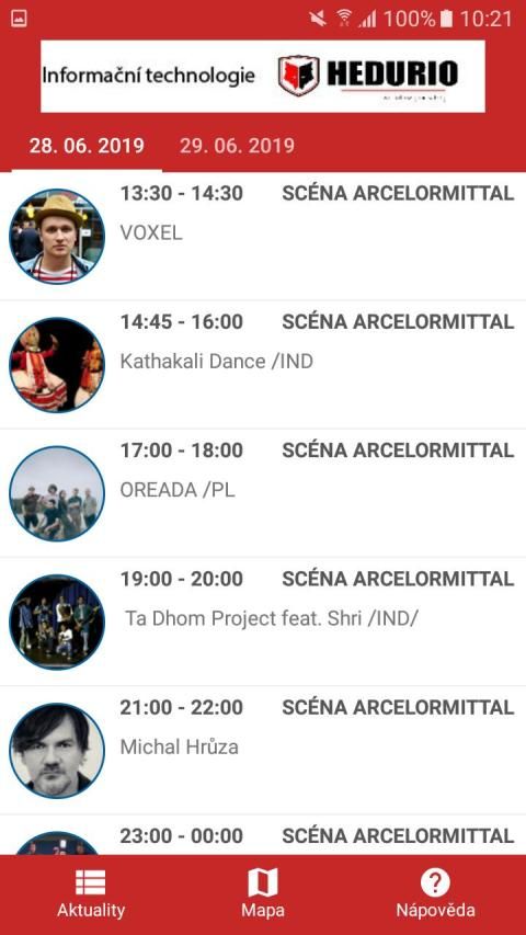 3.) Programové menu daného dne, s detailem probíhajících vystoupení.