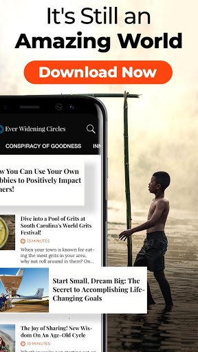 In need of some positive news? With the Ever Widening Circles (EWC) app, a world of good news is always at your fingertips. Ever Widening Circles curates meaningful, inspiring content that’s free from politics and ads enabling you to get your dose of optimism whenever you want it!