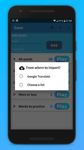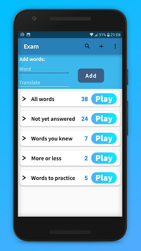 In addition, you can practice structured lists of words in the app, or create your own list.