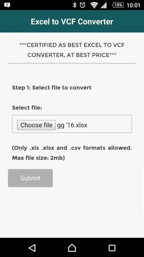 This is a simple, 3-step tool to convert your contact details in excel / spreadsheet to vCard (3.0) format. Supported formats are: xls, xlsx and csv. This format is most suitable for importing contacts in mobile devices. This app is made because of various user requests we received.