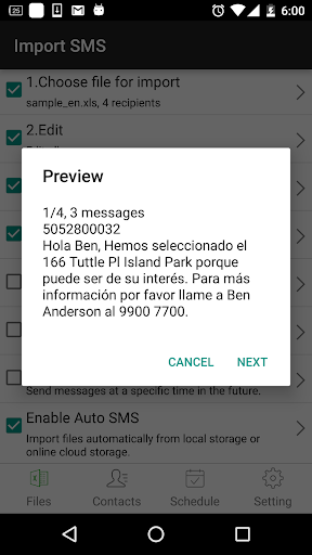 ★ Create a formatted Excel file easily. The file can contain only two columns : Mobile and Message. You can find more example spreadsheets on the app’s website.