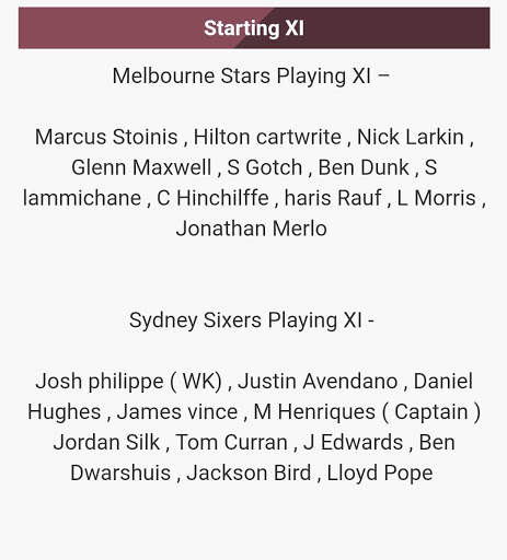 o Playing Xi after toss