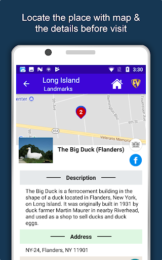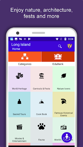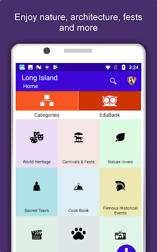 Apart from this, Long Island Travel & Explore guides you Why, When and How to visit various places in Long Island with precise location on the detailed Map. There are two ways to explore this app - Category view and EduBank favorite places view. Pin your destinations and get the routes on the Map. Not only this, you can see exactly how the places look like with Street View integrated in this app. The app also has a feature to Rate and write Review/Experience regarding entity(s) through Login. Your Travel experience and rating will help the user community.
