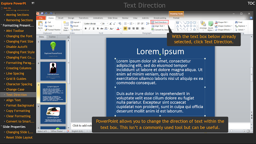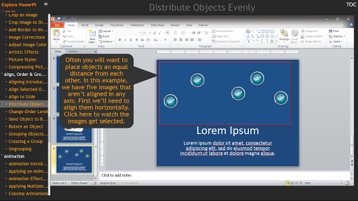 Explore PowerPoint helps you to unlock the full potential of Microsoft PowerPoint with interactive video tutorials that simulate the real program. This bite sized activity approach promotes faster understanding when compared to reading unclear books or watching a long rambling video. You will find tips and explanations of concepts that will help you to create advanced documents quickly and easily.