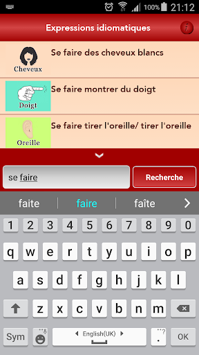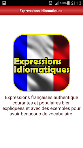 Learn french idioms with our new free application that provides you with the most popular and often used expressions in everyday speech. This application helps improve your level in the french language while learning new words, new expressions and new vocabulary with every idiom.