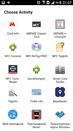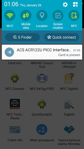 This app allows to use external NFC reader with usual NFC applications.