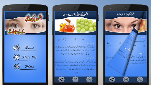 Penjagaan mata dalam aplikasi Urdu se app apni nazar ko ya aankhon ki roshni ko taiz kar saktay hain aur gelas se bach saktay hain.Nazir hussain, zubaida apa, aur khurram k desi aur petua herba aur totkon se lingkaran hitam ya halkay khatam karen natural tariqay se