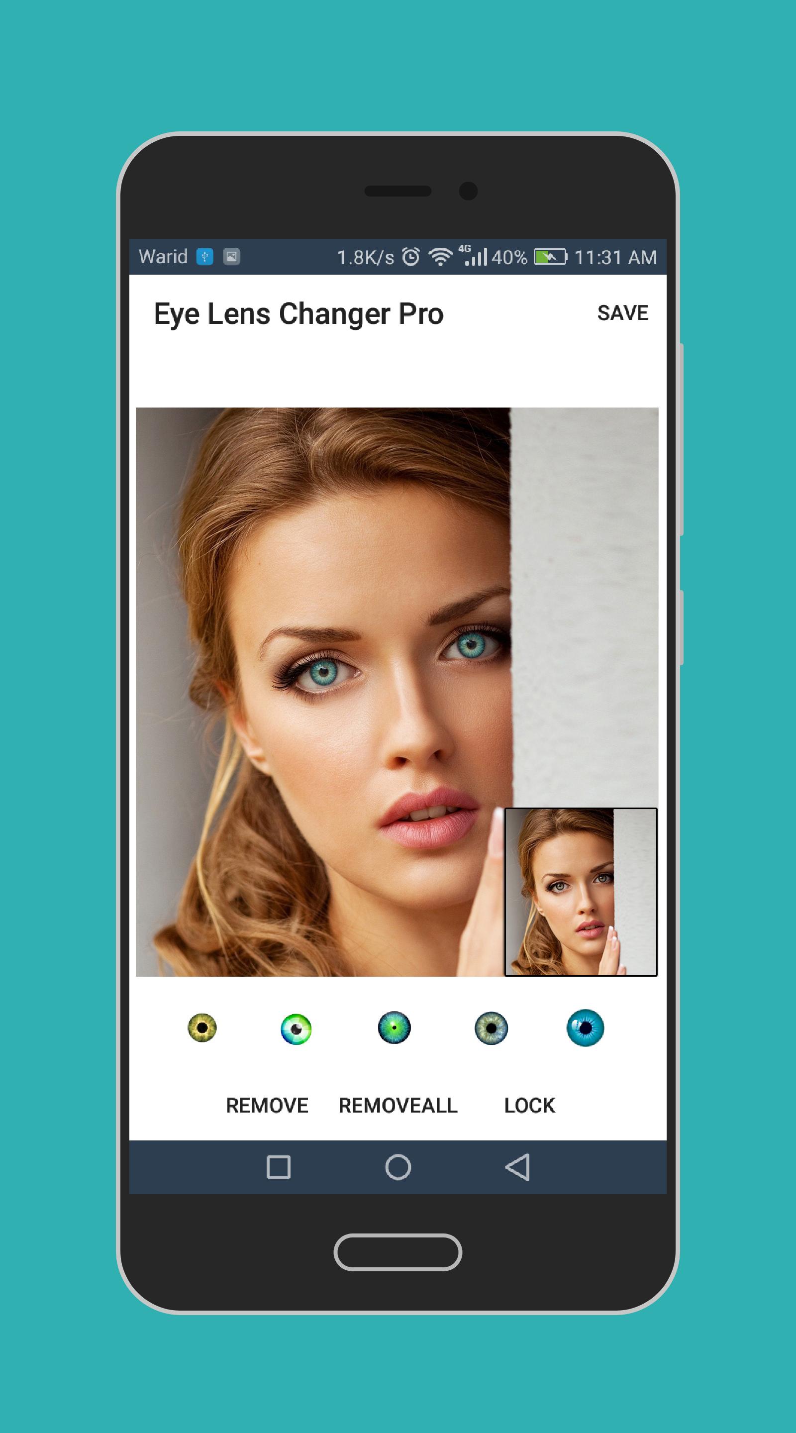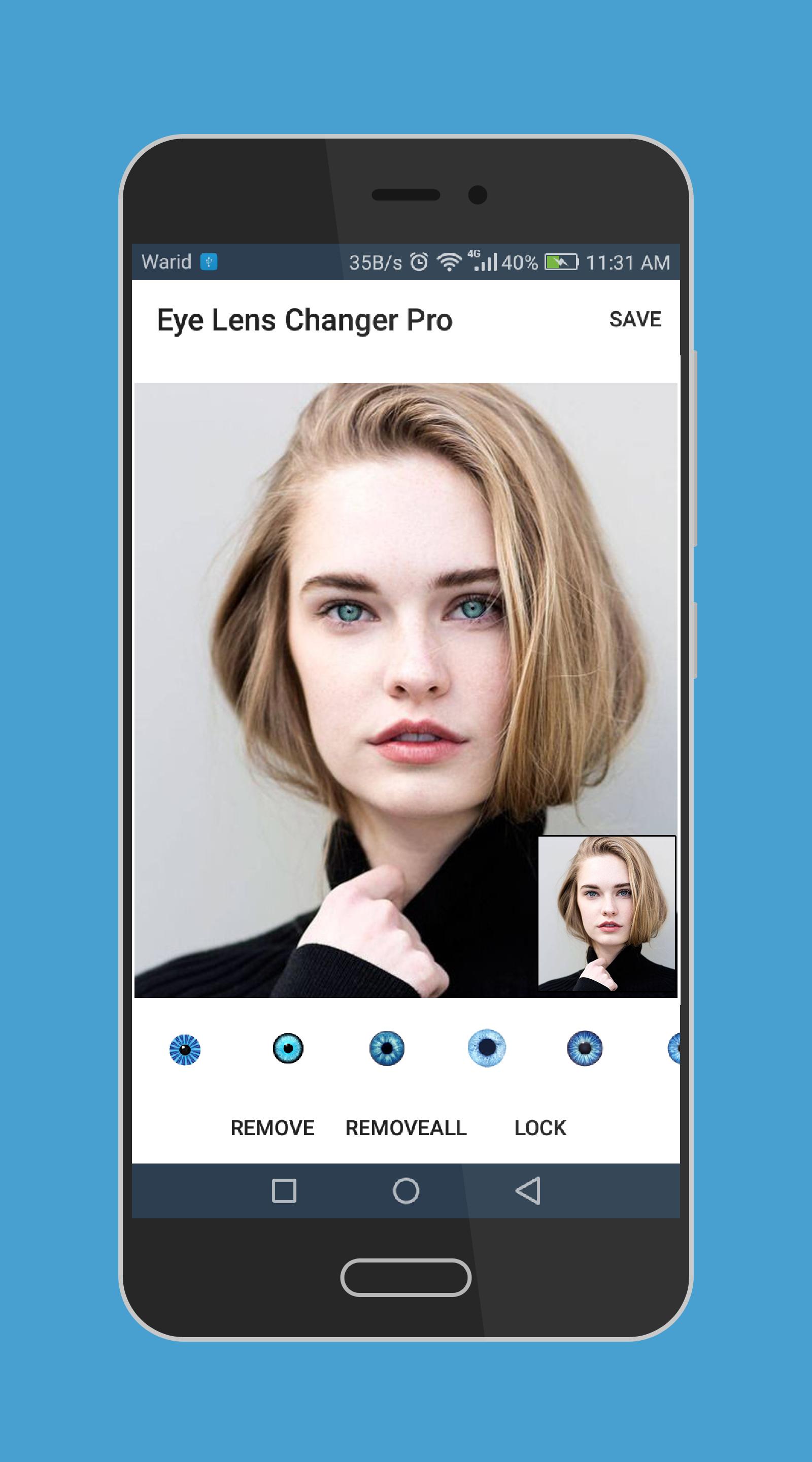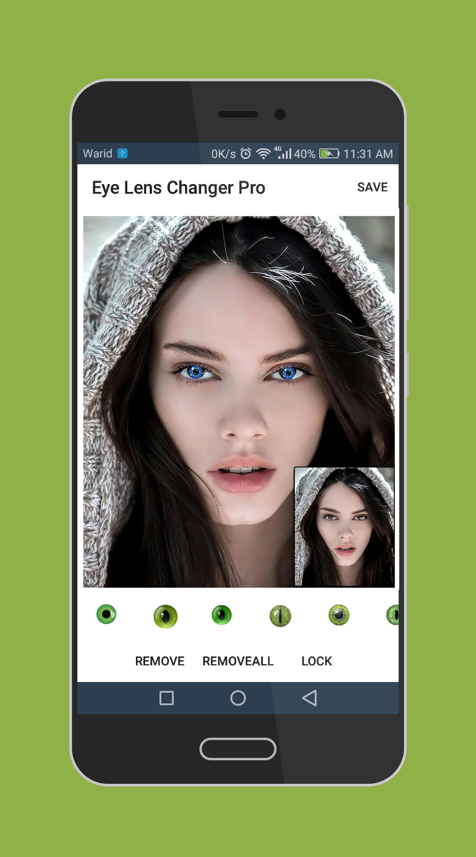 -> Beauty of this app is a normal person can easily use Eye Lens and by following simple steps she can make her eye lens change photo.