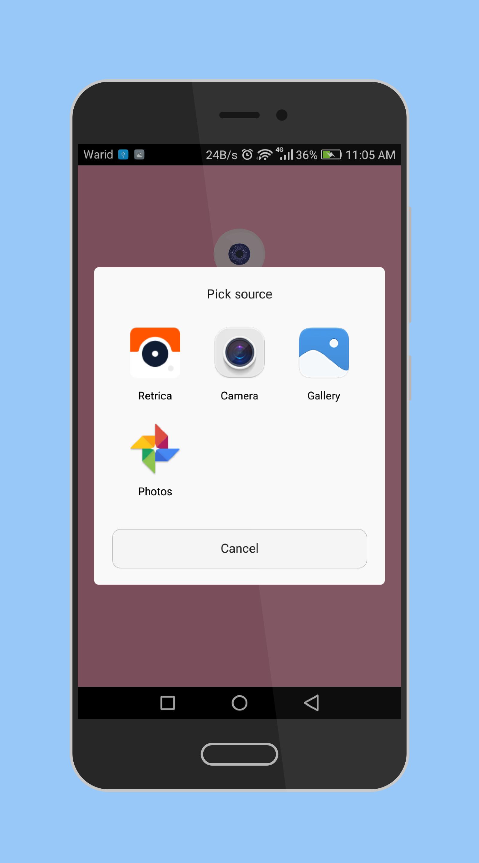 --> Choose photo from gallery or make new photo from any camera app.