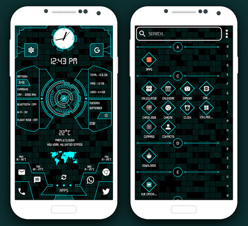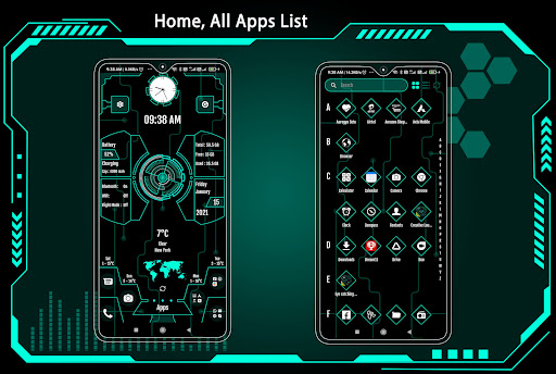 Immerse yourself in a world of color with millions of theme color options. Watch as your entire launcher transforms to exude a futuristic hitech vibe.