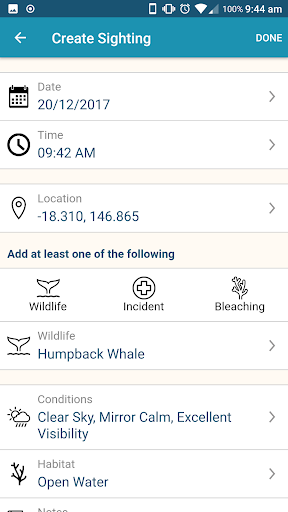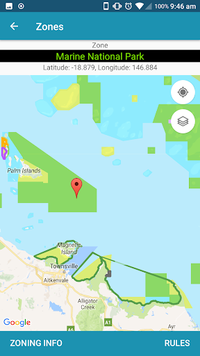 The Eye on the Reef App includes Marine Parks zoning and the ability to record and share wildlife sightings with the Great Barrier Reef Marine Park Authority and others.