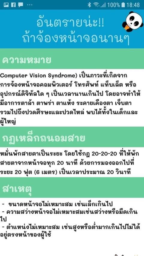 โปรแกรมสำหรับตั้งเวลาในการใช้งานมือถือ เมื่อครบกำหนดเวลา จะมีข้อความแจ้งเตือนให้ทำการหยุดพักสายตาจากการเล่นมือถือ