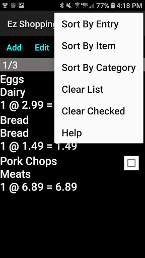 Description of Ez Shopping List