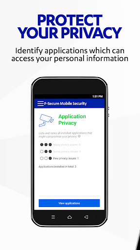 With antivirus and web browsing protection, you’re protected against viruses, spyware, hacker attacks and online identity theft. With F-Secure Mobile Security, you can browse, shop and bank online in peace. It also protects you from malicious apps by showing you which apps on your device are a risk to your privacy.