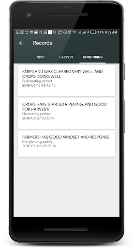 The farmer would be able to view farm input disbursement records and access geo-located weather updates for their farms.
