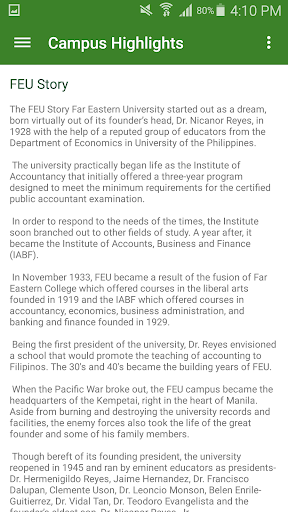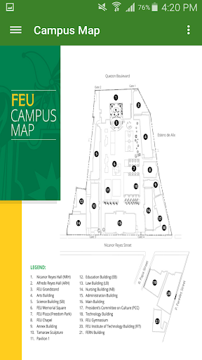 • Campus Map – here the app shows the birds-eye view of Far Eastern University and its featured Campus Spots.