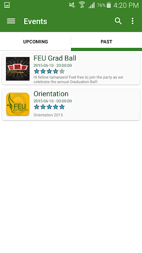 • Events – FEU Cultural App also populates and invites the students or staff to join the events tagged to FEU.