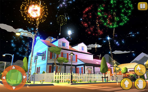 The fireworks controls in this game are super easy. Move around the city by using joystick on left side of your screen. You can also jump from upward arrow head button on right side of the screen. Walk to the store and stand in the circle to buy firewood for your pranks. Complete the objective by going to people’s house and doing some marvelous explosions.