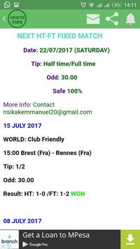 The best app that provides you with fixed odds for your day to day football betting. Give this app a try and see your betting profits change from normal to abnormal We offer this FREE TIPS FIXED HT/FT FIXED CORRECT SCORES