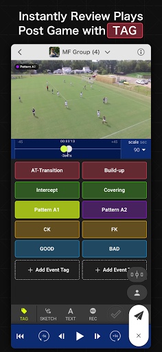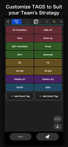 You can upload your videos onto FL-UX and tag scenes watching the video (Video Tagging). In addition to that, you can tag scenes during the match without leaving your eyes from the players (Live Tagging).