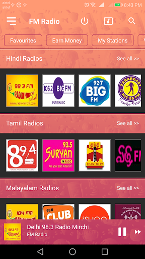 Mostly all famous radio stations like Radio Mirchi, Big FM, Radio City, Fiver 104, etc. are available in the app and Equalizer to enhance music tuning. Even you can add your custom radio in the app.
