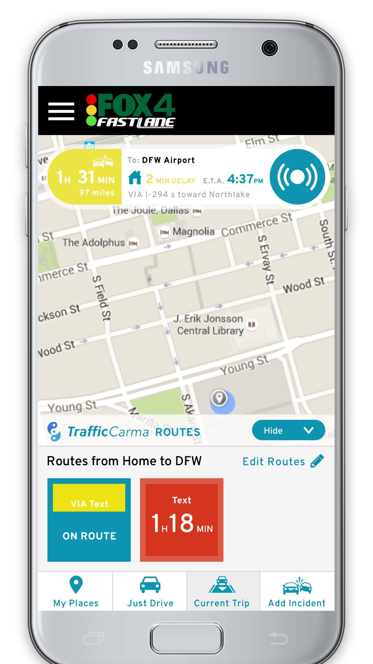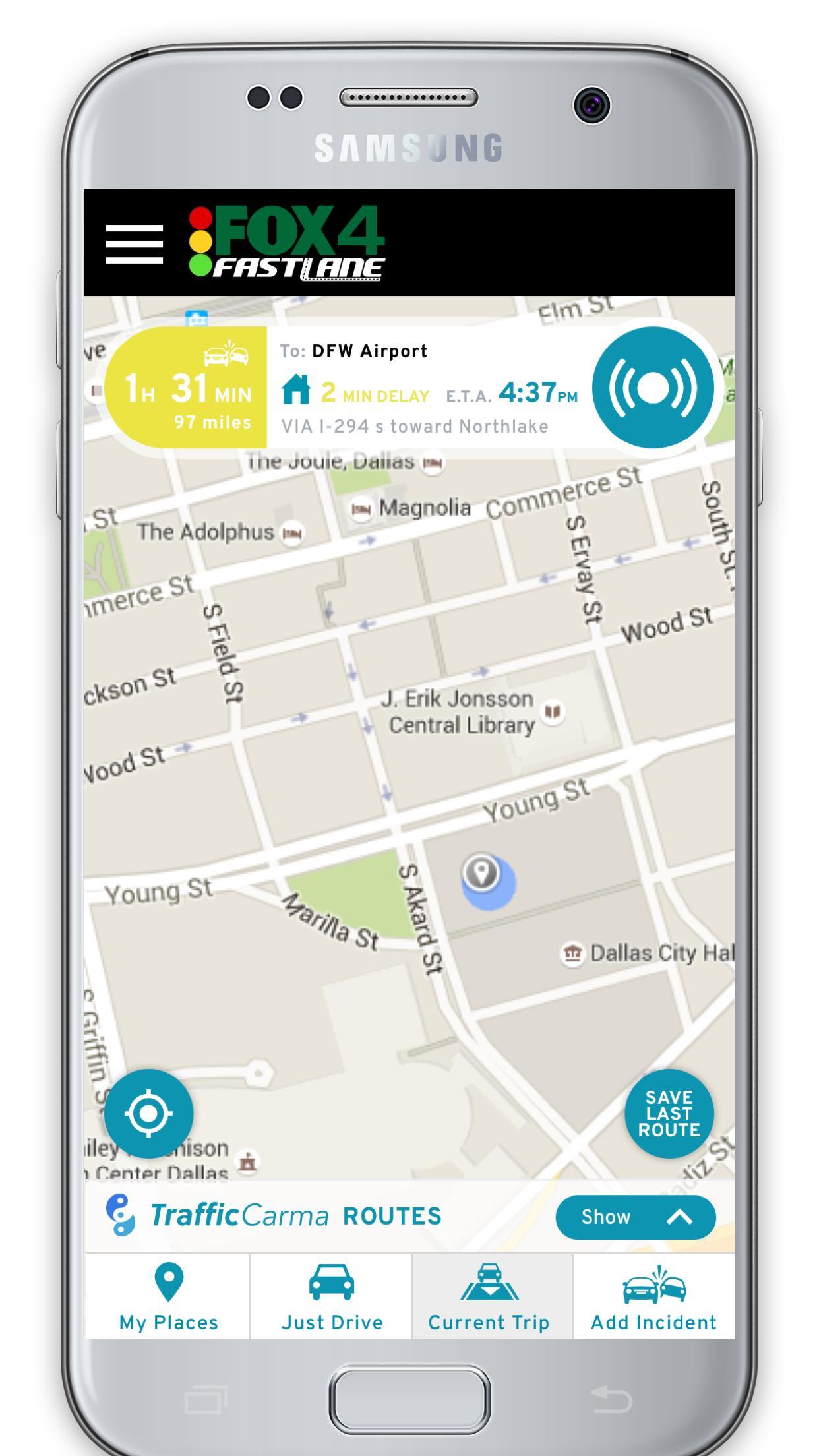 FOX 4 FASTLANE utilizes the cutting edge technology of TrafficCarma ™, a real-time traffic data engine that generates the most up-to-the-minute traffic and routing information from one of the world’s leading sources of traffic data.