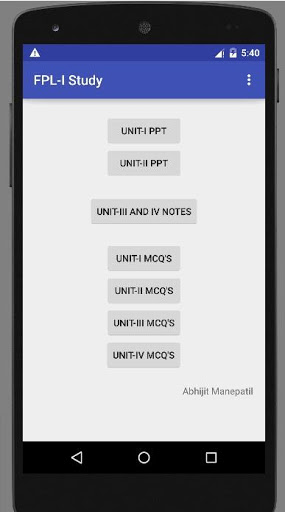 This app will provide an opportunity for the students of First Year Engineering studying in Savitribai Phule University of Pune, Maharashtra to learn and make a ease of studying for the Fundamental Programming Language-I (FPL-I) subject will cover all the study material like PPT,Notes,MCQ's important for University Examination.