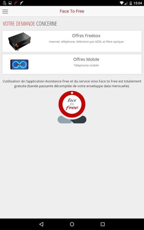The use of the application and Free Assistance Service visio Face to Free is completely free (bandwidth envelope deducted from your monthly data).