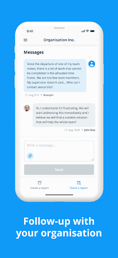 Companies can use FaceUp as a whistleblowing platform to help maintain a corporate culture and create safer and better workplaces. Through FaceUp, anyone in the company can anonymously report any problem or write suggestions to improve the current situation.