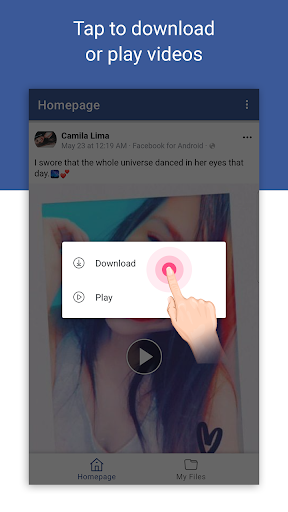 FB Video Downloader lets you browse through your Facebook news feed, liked pages. Just simply tap on the video link to play, download or share it. Save video to your gallery to watch them later.