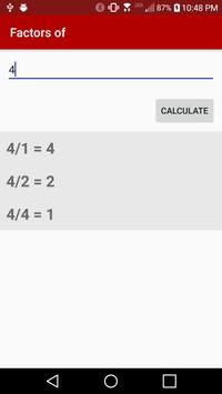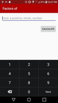 This application makes it easy for any user to find the factors of any positive integer. A user enters one, positive, whole number and the application will return the factors of that number.