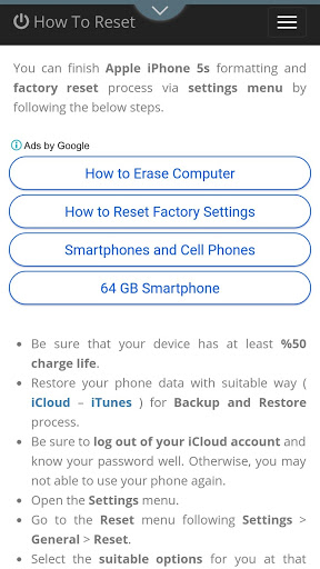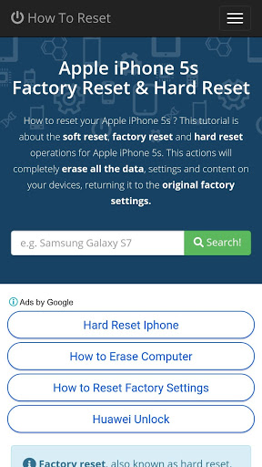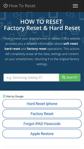 How to reset your smartphones or tablets ? This website provides you a detailed information about soft reset, hard reset and factory reset operations. This actions will completely erase all the data, settings and content on your smartphone, returning it to the original factory settings.