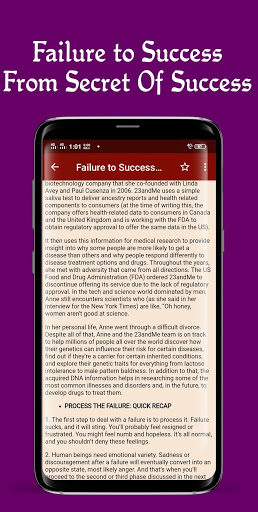 In this Failure to Success (Offline) app, we described a few things to emphasize the matter like, failure leads to success definition, failure leads to success examples, failure success happiness, failure key to success, great failure is key to success quotes with success stories.