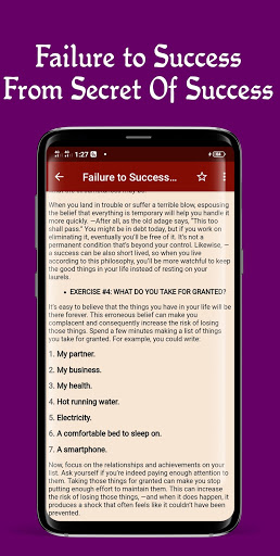 In this Failure to Success (Offline) app, notes that failures are the key to success based thoughts on success. This app defining success with the habits of successful people. Be a successful man in every step she/he should know what success is and he/she has to know success planner based on successful people, draw a map of the road to success, way to success, the secret of success, steps to success,