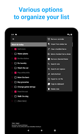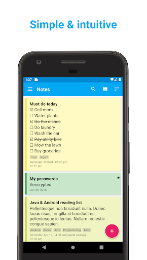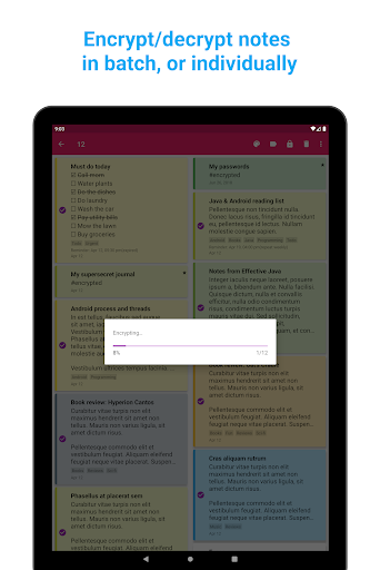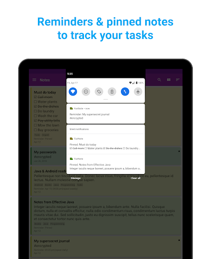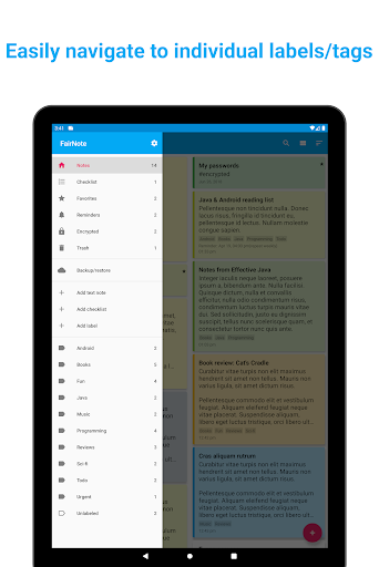 FairNote is a simple and intuitive notepad app, giving you speed and efficiency while writing notes, making to-do lists, or jotting down quick ideas. You can organize notes using labels/tags and different colors, use reminders to keep better track of your tasks, protect sensitive data using industry-standard encryption, and best of all, if your device supports biometric authentication, you can conveniently use that to encrypt/decrypt notes without having to enter your encryption password every time.