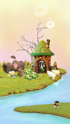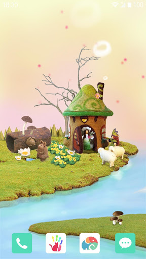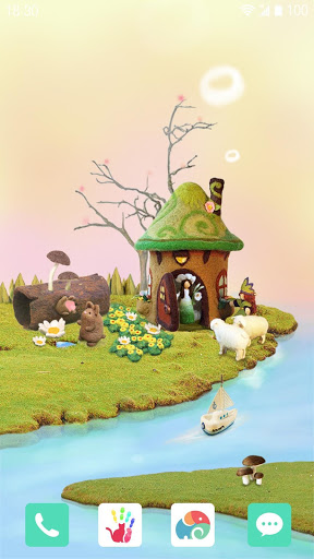 Fairy House Live Wallpaper presents us a lovely little fairy world which most of us used to picture in our mind when we were small kids. Here is a small piece of land surrounded by water, and there is a small mushroom-shaped house built on it. It seems that the house owner is cooking because the chimney is belching white smoke. And you can also see a couple of brown rabbits and two white lambs as well as some beautiful flowers around the house.