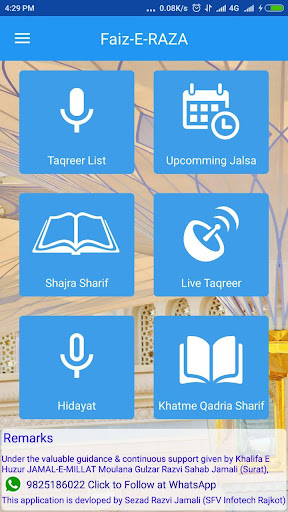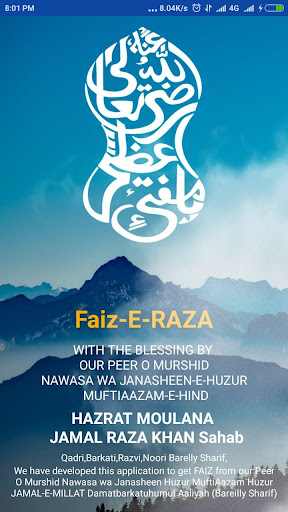 We have developed this application to get FAIZ from our Peer O Murshid Nawasa wa Janasheen Huzur MuftiAazam Huzur JAMAL-E-MILLAT Damatbarkatuhumul Aaliyah (Bareilly Sharif)