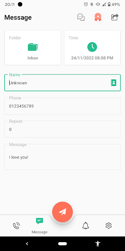 Customize information for fake messages: Name, phone number, message content