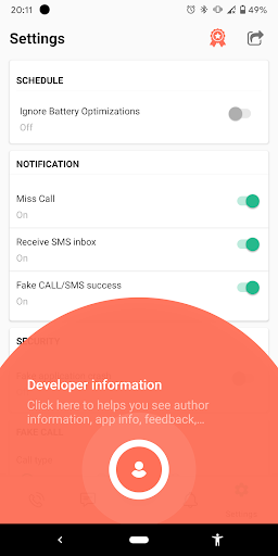Customize vibration mode, ringing and talk time for fake calls.
