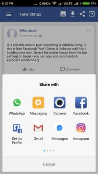 If you are looking for some fun online, this app is a must-have. This app lets you create screenshot like photos of your fake Facebook status. You can customize the status with as many likes and shares as you want. Once done, you can save the fake Facebook status and share it with your friends.