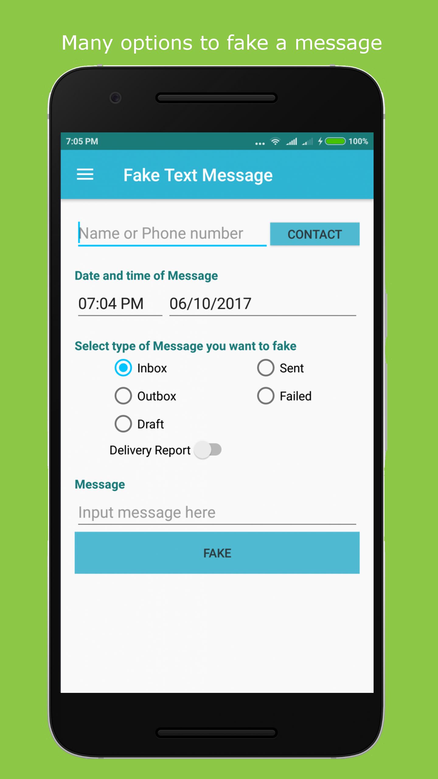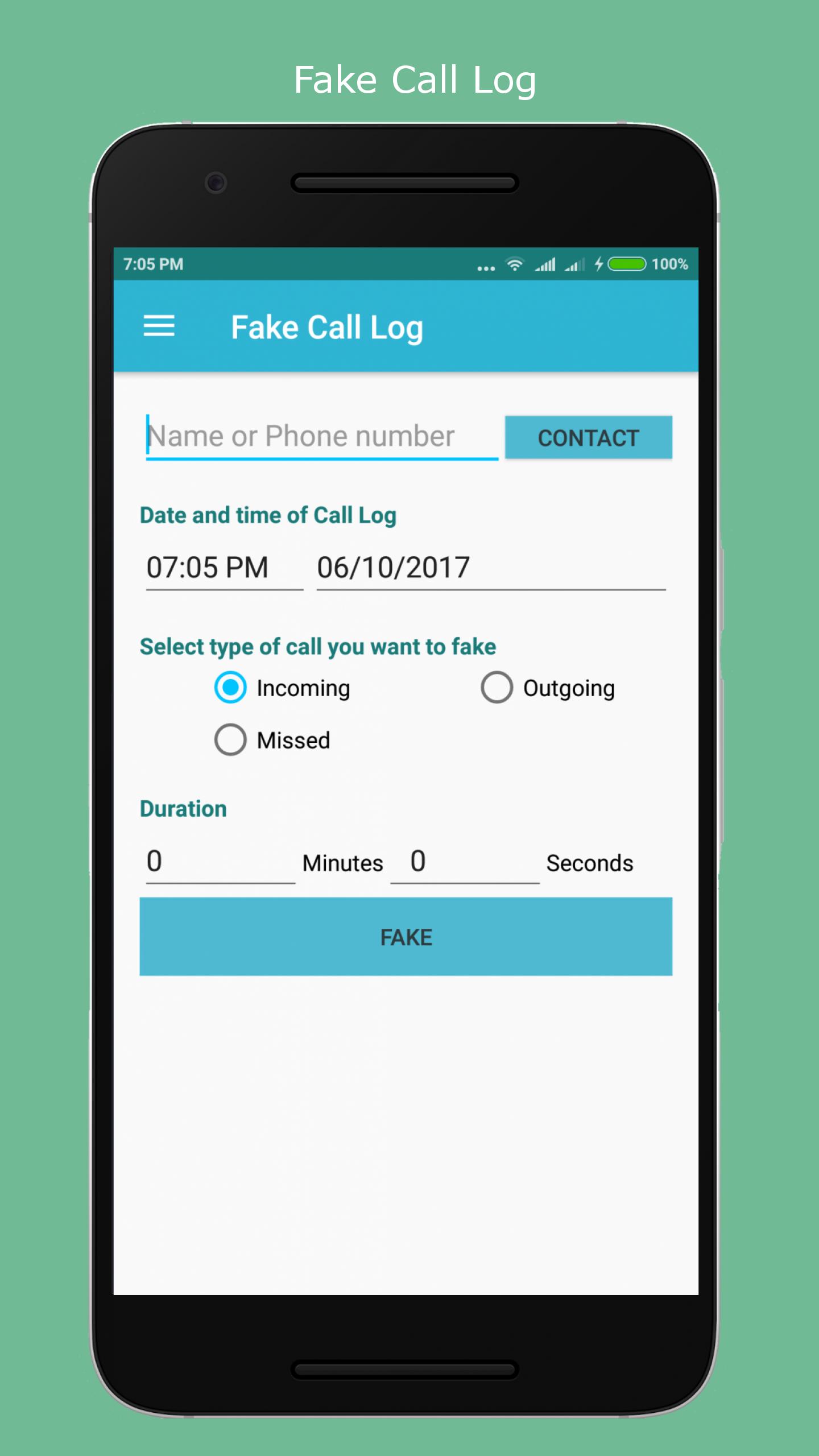 'Fake Text Message and Call Log' let you receive fake text messages from anyone you want! It also lets you create a fake call log in call history.