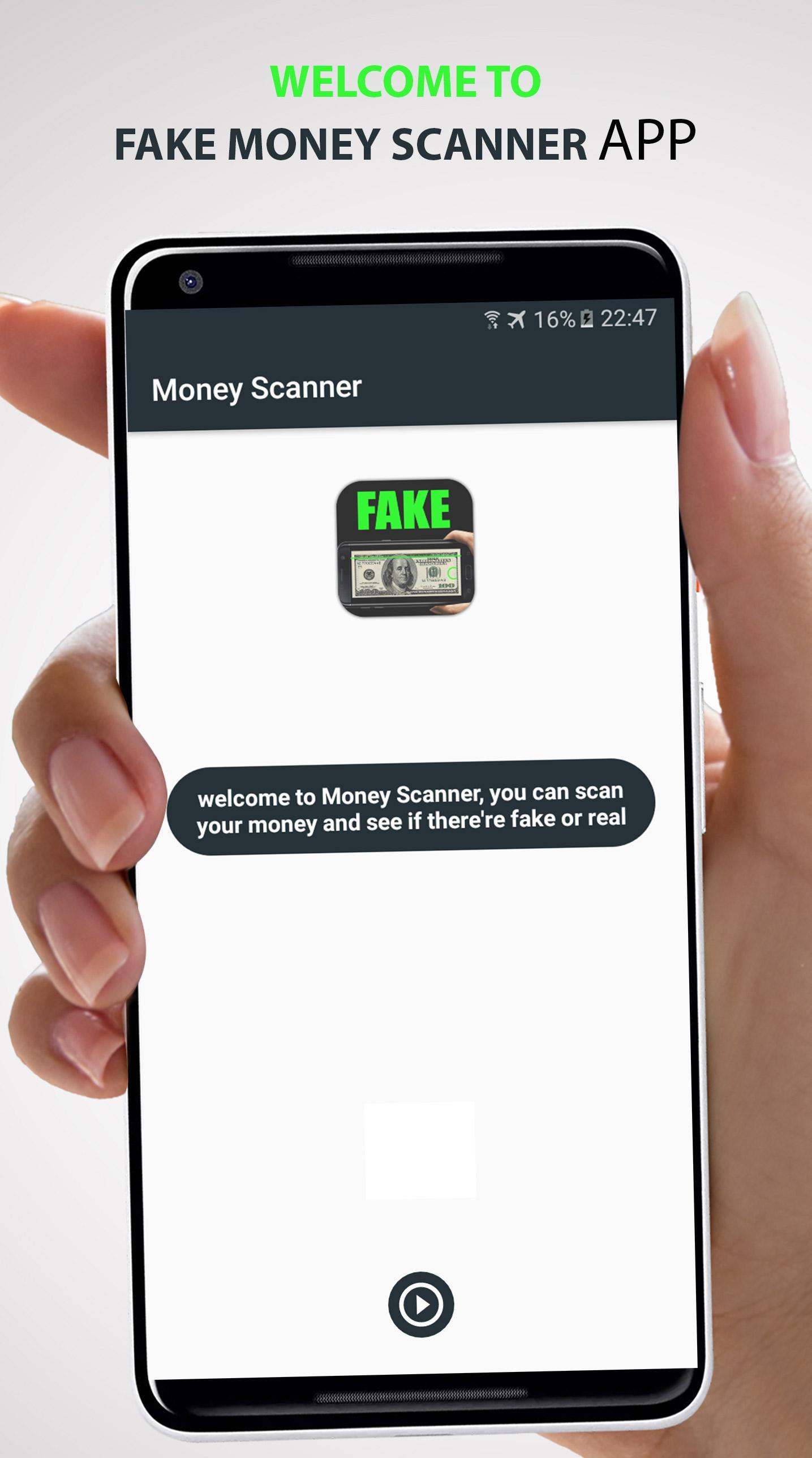 Are you wondering if your banknotes in wallet are authentic, or someone gave you fake money? Fake money detector is a realistic simulation of app which pretends to check authentication of your banknotes. Of course it's only a joke, but you can fool your friends that you have advanced mobile phone with ability to check if money are counterfeit or authentic.