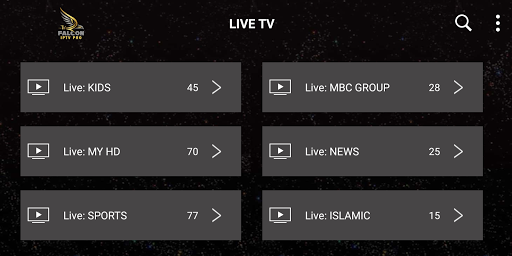 تطبيق Falcon IPTV Pro هو تطبيق بث خدمات IPTV للمستخدمين. ويوفر وسيلة لمشاهدة البث التلفزيوني المباشر ، مكتبة