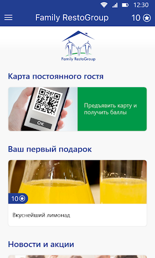 Usando las aplicaciones de Family Restogroup, obtiene un mapa de bonificación individual de nuestras instituciones.Cada vez que visita el restaurante "Cafe Larion" o los bujes de Kumanyuk, es suficiente usar la aplicación con puntos acumulados y intercambiarlos para regalos agradables.